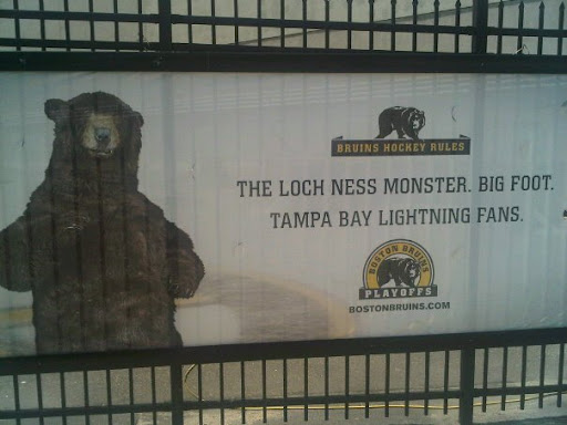 This game was a huge relief, and Love That Dirty Water playing over the Garden sound system after the game ended almost gave me déjà vu from last years playoffs wins at home. You can't blame me since this was against the Lightning, like in the Conference Finals: things like Roloson in net playing great hockey and the recent resurgence of The Bear, who we hadn't seen since Tampa fans got unreasonably offended and outraged over the Bruins brilliant marketing scheme from last year's playoffs; after Tampa fans bombarded the Bruins marketing staff with personal threats, The Bear was no more.